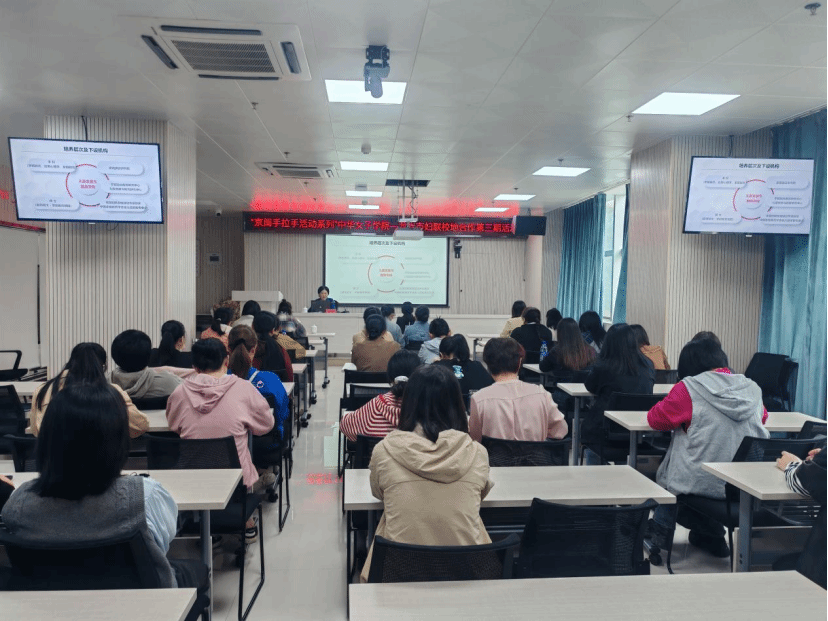 儿童发展与教育学院党总支书记郑雷在龙岩市妇女儿童活动中心开展专题宣传讲座,从特色鲜明、优势突出的学科建设,到师德高尚、业务精湛的师资团队,再到硕果累累、创新引领的教学科研工作,通过鲜活的案例,系统展现了学院在人才培养、科学研究和社会服务等方面的卓越成就。通过播放视频《我们》,全方位呈现了学校的办学底蕴、发展脉络与师生风貌,为提升学校的社会影响力奠定了坚实基础。