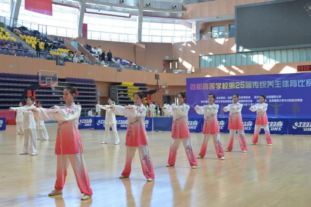 11月16日,首都高校第25届传统养生体育比赛在北京建筑大学圆满落幕。北街比赛吸引了来自首都35所高校,407名运动员同台竞争。中华女子学院武术队获得总分121分的好成绩,八个大项多点开花,斩获多项佳绩,续写了我校在该赛事中的荣耀篇章。
