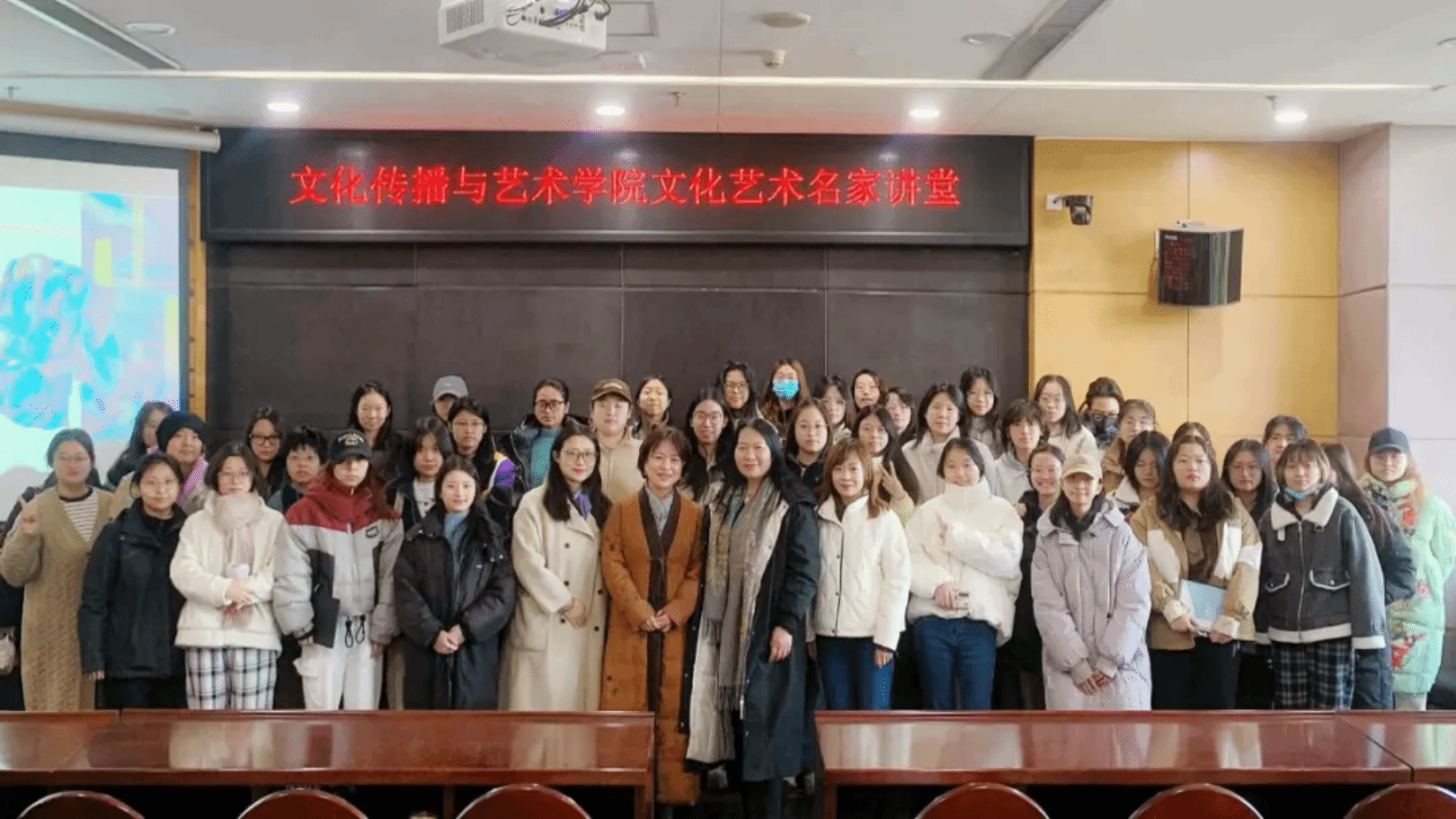 文化传播与艺术学院服装与服饰设计专业、视觉传达设计专业师生聆听讲座。中华女子学院文化传播与艺术学院院长、北京市教学名师、科创中国文化和科技融合发展服务团首席专家王露担任学术主持。