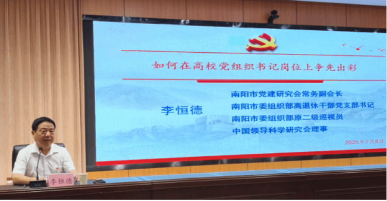 为深入学习贯彻习近平新时代中国特色社会主义思想,在深入开展中央八项规定精神学习教育之际,学校党委于7月7日至12日在河南南阳市党支部书记学院举办基层党组织书记培训班。党委副书记赵浩带队,党委常委、党委组织部(党委统战部)部长张霞,党总支、党支部书记30余人参加培训。