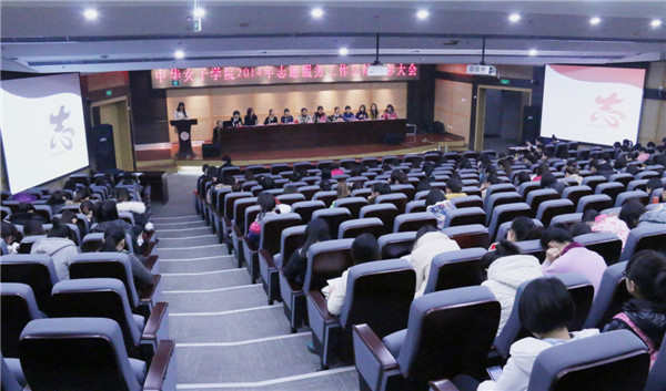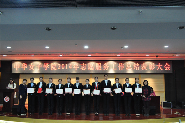2014年12月9日,中华女子学院2014年志愿服务工作总结表彰大会在我校报告厅隆重举行。校团委书记张瑞芝、团委老师、各院系团总支书记及学生志愿者代表300多人参加了表彰大会。
