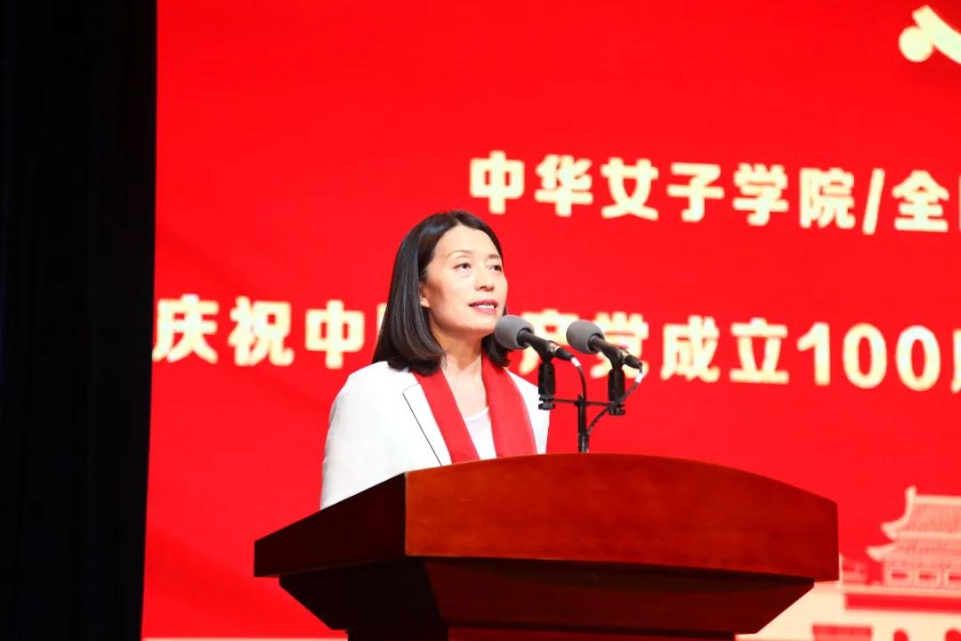 会上,学校党委书记李明舜发表重要讲话,他指出:历史昭示未来,奋斗铸就辉煌。习近平总书记深刻指出:“一百年来,中国共产党团结带领中国人民进行的一切奋斗、一切牺牲、一切创造,归结起来就是一个主题:实现中华民族伟大复兴。” 历史是最好的教科书,也是最有力的见证者。百年来,我们党始终把实现妇女解放和妇女发展、实现男女平等写在自己奋斗的旗帜上,始终把广大妇女作为推动社会进步发展的重要力量,始终把妇女事业作为党和人民事业的重要组成部分,始终把妇女工作放在重要位置,领导我国妇女运动取得了伟大的历史性成就,开辟了中国特色社会主义妇女发展道路。“教育是国之大计、党之大计”。我校女子高等教育的发展成就,正是因为我们始终坚持全面贯彻党的教育方针,始终坚持全国妇联党组的正确领导,落实立德树人根本任务,为党育人、为国育才,引导学生们感党恩、听党话、跟党走,做党的好女儿。