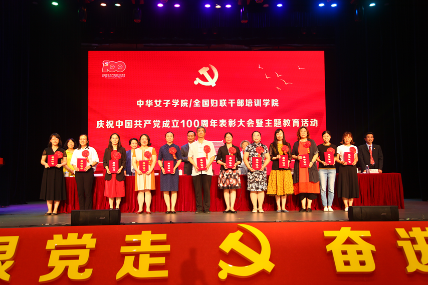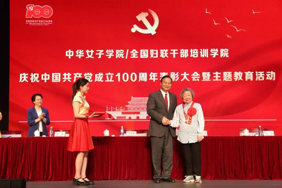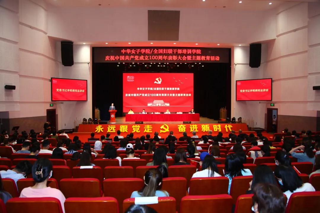 7月1日下午,中华女子学院/全国妇联干部培训学院举行庆祝中国共产党成立100周年表彰大会暨主题教育活动。学校党委书记李明舜出席并发表讲话,大会由学校党委副书记赵浩主持,副校长王练、党委副书记任翠茹、副校长周应江出席会议,50年以上党龄的退休老党员,以及中华女子学院全体师生党员和教职工700余人参加了庆祝活动。此次活动对于全体师生党员和教职工牢记党的光辉历史,歌颂党的丰功伟绩,发扬党的优良传统,进一步提高我校党组织的战斗力、凝聚力和创造力,增强全体党员干部的荣誉感、使命感和责任感,推进党的建设具有十分重要的意义。