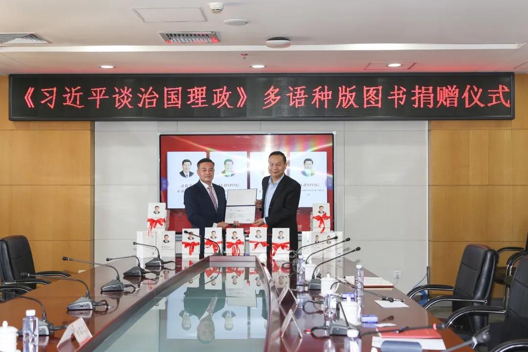仪式上,李书记向北京崇学文化发展有限公司余先生捐赠该套图书表达了感谢,并简要介绍学院历史和办学育人、对外交流工作。此次捐赠的多语种图书,丰富了图书馆外文馆藏资源,是学校图书馆宝贵的文献资源,有助于全校师生在国际交流中遵循习近平治国理政思想,有助于留学生了解习近平治国理政思想,有助于在民间外交中宣扬和讲好中国故事。