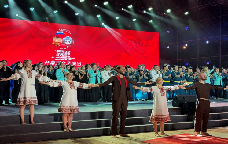“布达什金”俄罗斯国立管弦乐团、伊尔库茨克州交响乐团、俄罗斯西伯利亚国立模范民族合唱团、萨哈(雅库特)州“克里沃沙普科”国立乐团、阿迪格民族乐团、阿迪格民族舞蹈团、图瓦共和国民族乐团、西伯利亚男声合唱团、哈巴罗夫斯克边疆区爱乐俄罗斯乐团等多支高水准的俄罗斯艺术团体、中华女子学院文化传播与艺术学院表演专业学生共同参加了开幕式文艺演出,为两国观众奉献了一场精彩纷呈的演出。