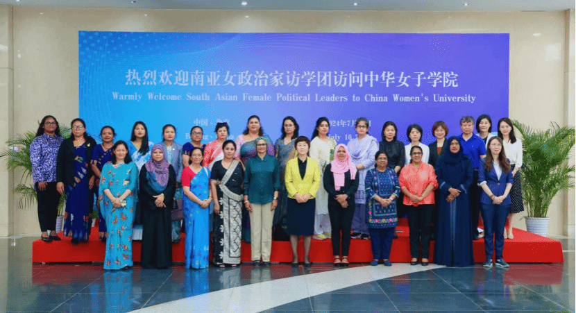 7月10日下午,由马尔代夫、斯里兰卡、尼泊尔和巴基斯坦女政治家组成的访学团一行20人访问中华女子学院,学校党委书记刘亚玫热情接待访问团一行,并就女性人才培养开展交流。