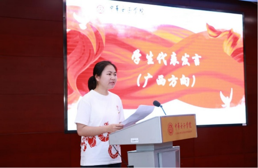 实践团全体学生在校旗前庄严宣誓:将以实际行动服务妇女儿童事业和乡村振兴;用脚步丈量祖国山河,用心灵倾听人民心声,用智慧感应时代脉搏;将青春华章镌刻在祖国的广阔天地,展现女院人的独特风采与巾帼担当。