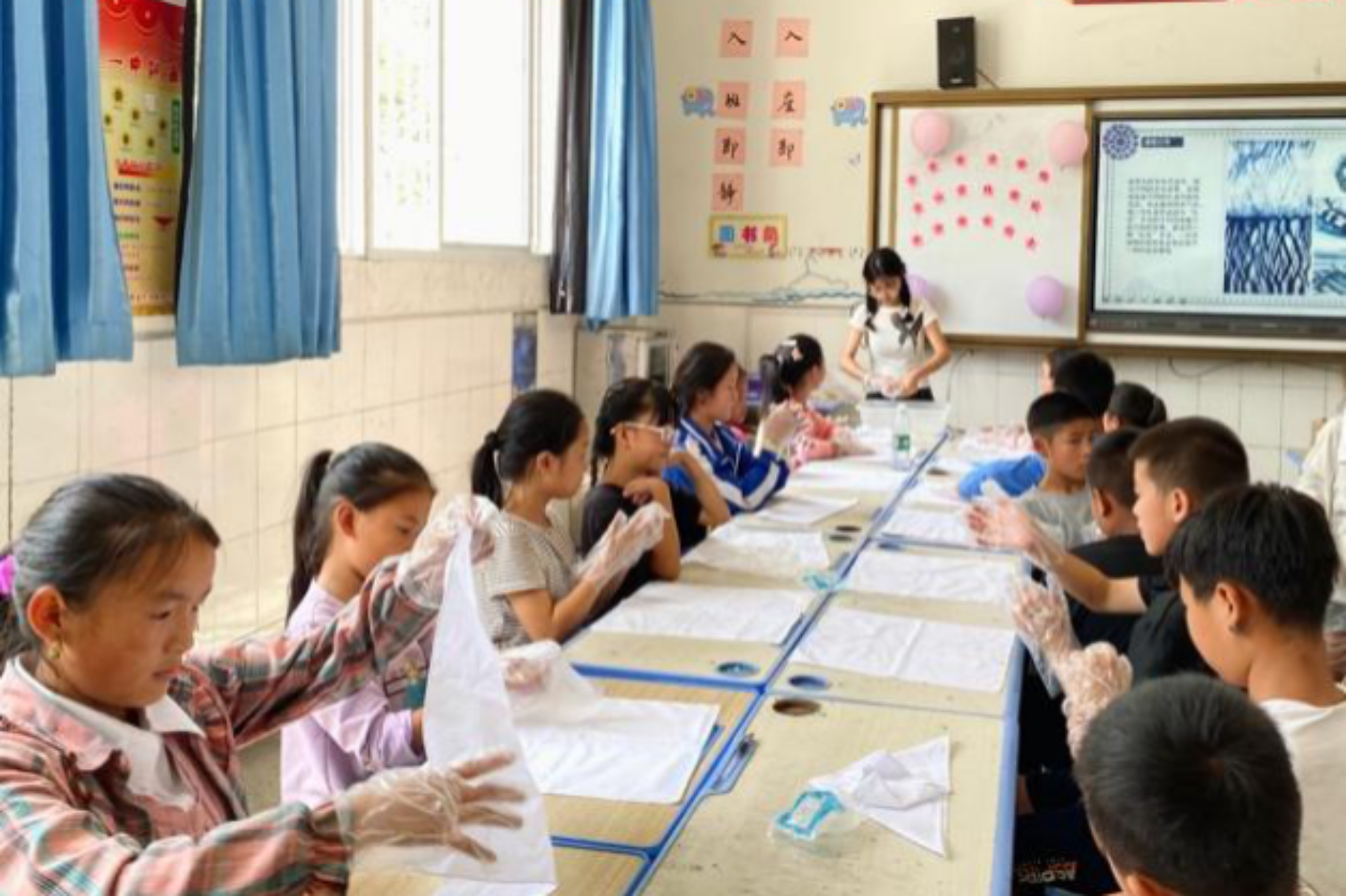 动手来实践,文化植心中。龙潭镇实践团成员带领孩子们学习脸谱知识,了解扎染的历史、图案特点以及制作方法,在亲手制作脸谱、扎染活动中,领略博大精深的中华优秀传统文化,进一步激发文化自信心与民族自豪感。形式多样的美育课堂,使同学们在感受美的同时,激发对美的事物的关注和喜爱,感受中国传统艺术的博大精深,有意识地保护、继承它,并从传统艺术中吸取营养,进行再创造。