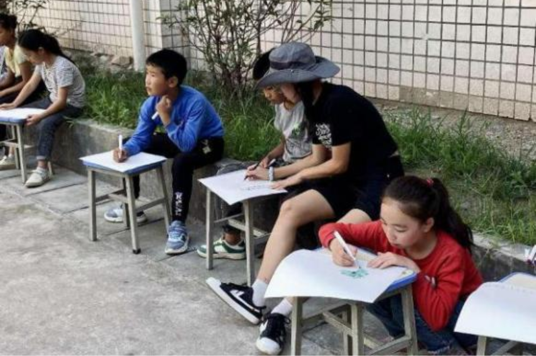 在龙潭镇,实践小分队队员们以“热爱家乡、热爱学校”为主题组织开展了写生活动。大自然仿佛真的有一种魔力,能让孩子们自然而然的释放自己,他们不仅感受到了自然与建筑的融合之美,也从自己的画笔之下感受到了自我所蕴含的强大能量。