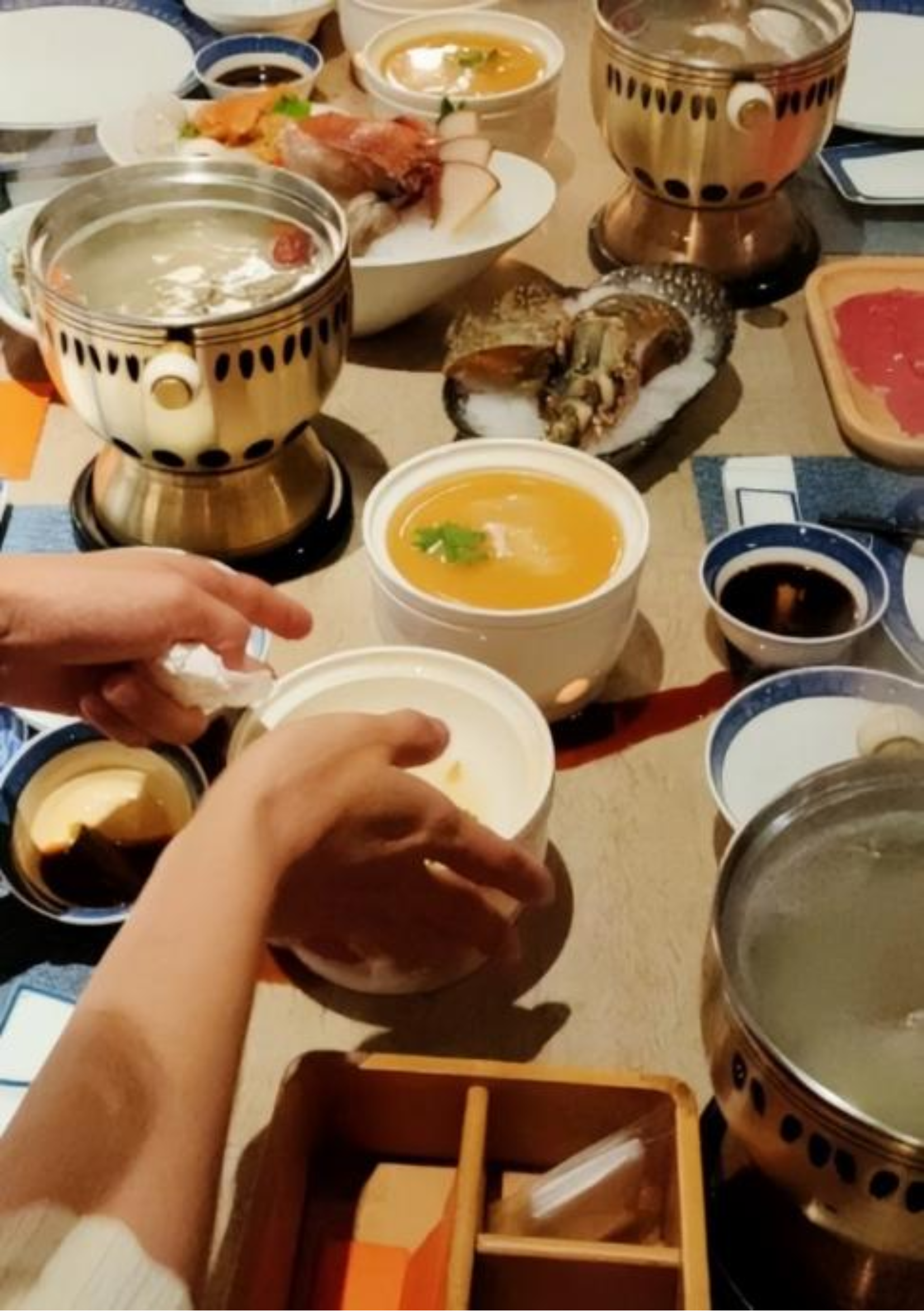 所谓“冬至饺子夏至面”,以往冬至在家,饭桌上必备的是经典的猪肉白菜馅饺子。家里的饺子肉馅总是分外饱满,白菜也十分鲜甜,每一口都很满足。离家上学的冬至,我也会收到来自妈妈的暖心外卖和叮嘱。