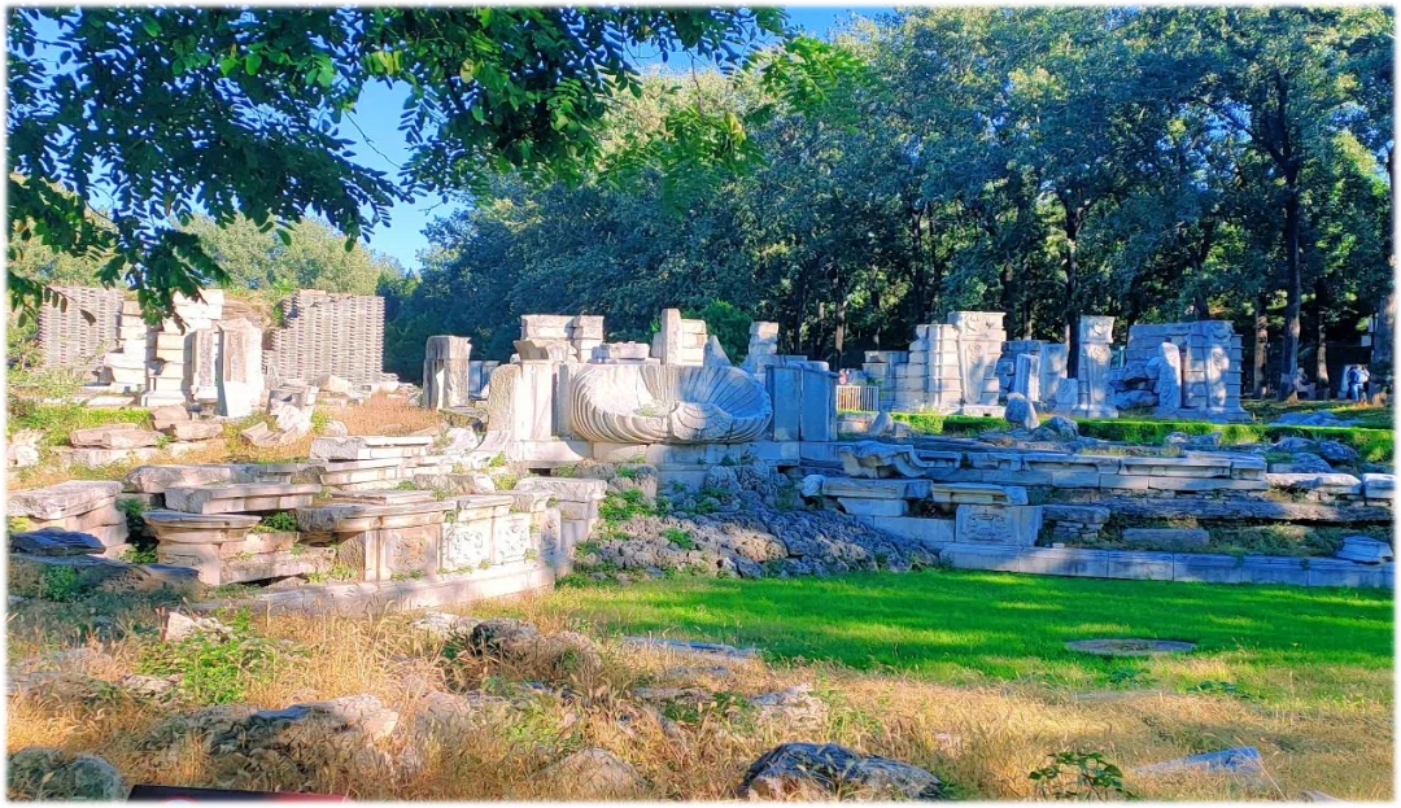 和煦的阳光下早秋的圆明园遗址公园显得美丽幽静。大家首先参观了爱国主义教育主题展——“劫灰飞尽 笃行致远”。本次展览是结合历年文物考古和保护的成果推出的一次专题展,以圆明园内欧式风格园林——西洋楼为出发点和立足点,分为“美贯中西”“劫后遗珍”“西洋残影”和“传承保护”四大展区,展现圆明园深厚的文化底蕴和新时代的保护典范。大家在观遗址、听讲解、忆国耻中领悟到“文化兴国运兴,文化强民族强”的深刻内涵。