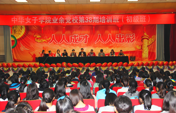 在党的十八届四中全会胜利召开之际,为进一步推进适应性教育及新生引航工程向纵深方向发展,引领大一学生树立坚定正确的政治方向,培育和践行社会主义核心价值观,2014年10月20日晚,业余党校第38期培训班(初级班)开班仪式在北校区礼堂举行。党委组织部部长李晓明出席仪式并作首讲党课,北校区全体党员作为培训班班主任参加了开班仪式,仪式由北校区党总支副书记兼副主任杨晓峰主持。本期培训班由学校党委组织部主办,北校区党总支承办,1038名大一学生报名参加了培训。