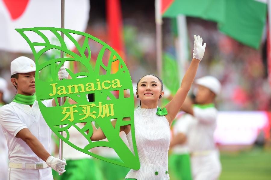 22日17时许,入场式开始。伴随着美轮美奂、寓意隽永的世锦赛宣传片,我校学生身着白色上衣和绿色短裙,分别执国际田联各参赛会员协会的队牌依次进入体育场,在主席台前列成旗阵。她们面带微笑,精神抖擞,身姿挺拔,动作整齐,向世界人民展示了中国女大学生的青春风采。