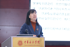 主旨发言环节,由中华女子学院妇女发展学院党总支书记丁新娅主持。北京大学魏国英教授、中国高等教育学会教育评估分会常务理事洪艺敏教授、中华女子学院女性学系韩贺南教授、中华女子学院妇女发展学院魏开琼教授先后发言。