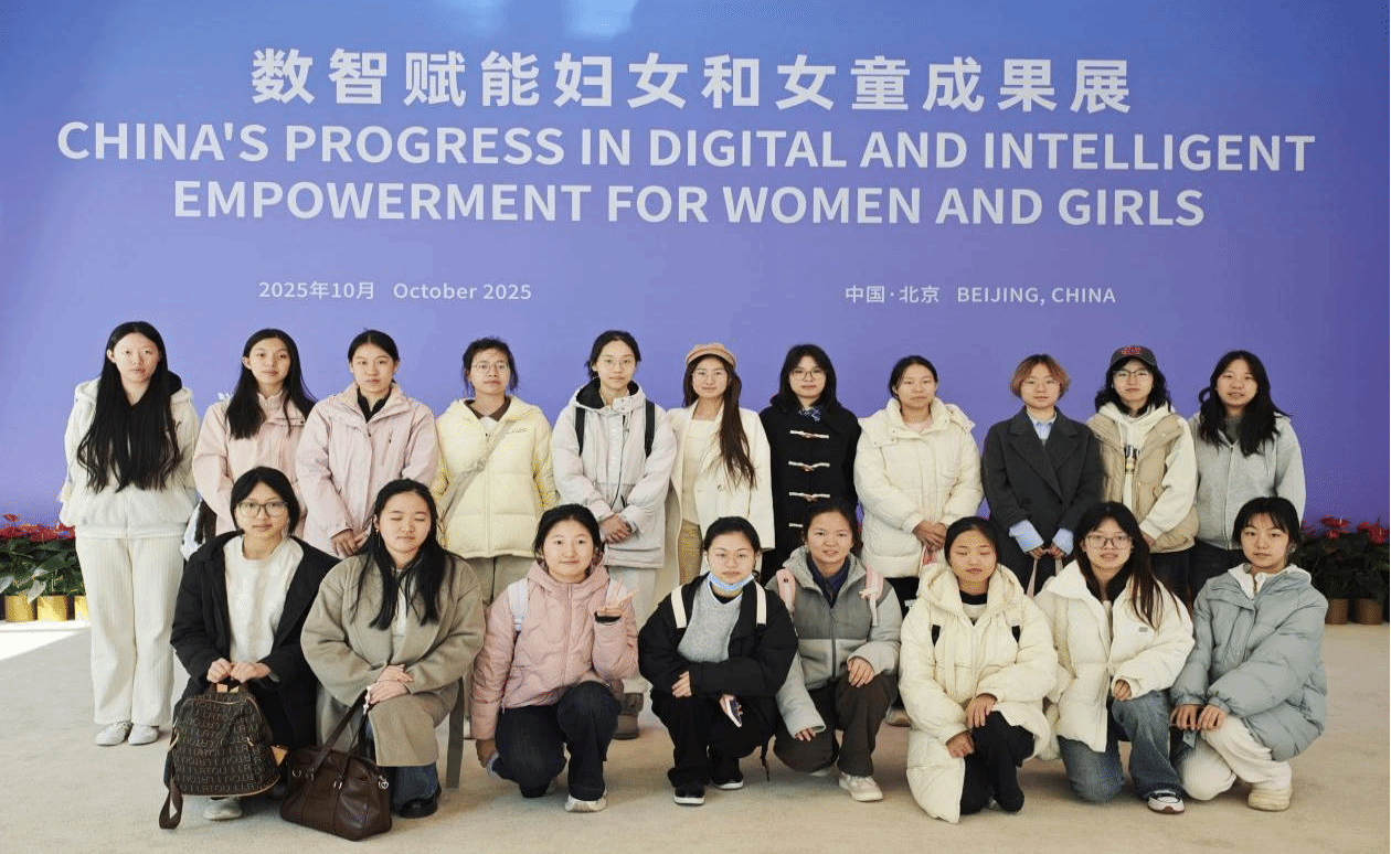 当我走入“数智赋能妇女和女童成果展”展厅时,如同走进一座科技与女性发展同频共振的智慧殿堂。智能医疗屏前的驻足,反家暴法展区的沉思,与机器人对弈的雀跃,“春蕾计划”数字图景的震撼……每一处都在向我们诉说:当科技的光芒照亮妇女儿童的成长之路,性别平等不再是远方的旗帜,而是可感可触的当下。从数字赋能到权益保障,这场展览让我看到,在数智时代,妇女儿童正以更自信的姿态,在科技浪潮中书写属于自己的精彩篇章,而作为女院学子,我们更应化身这浪潮中推动平等与进步的先锋浪花。