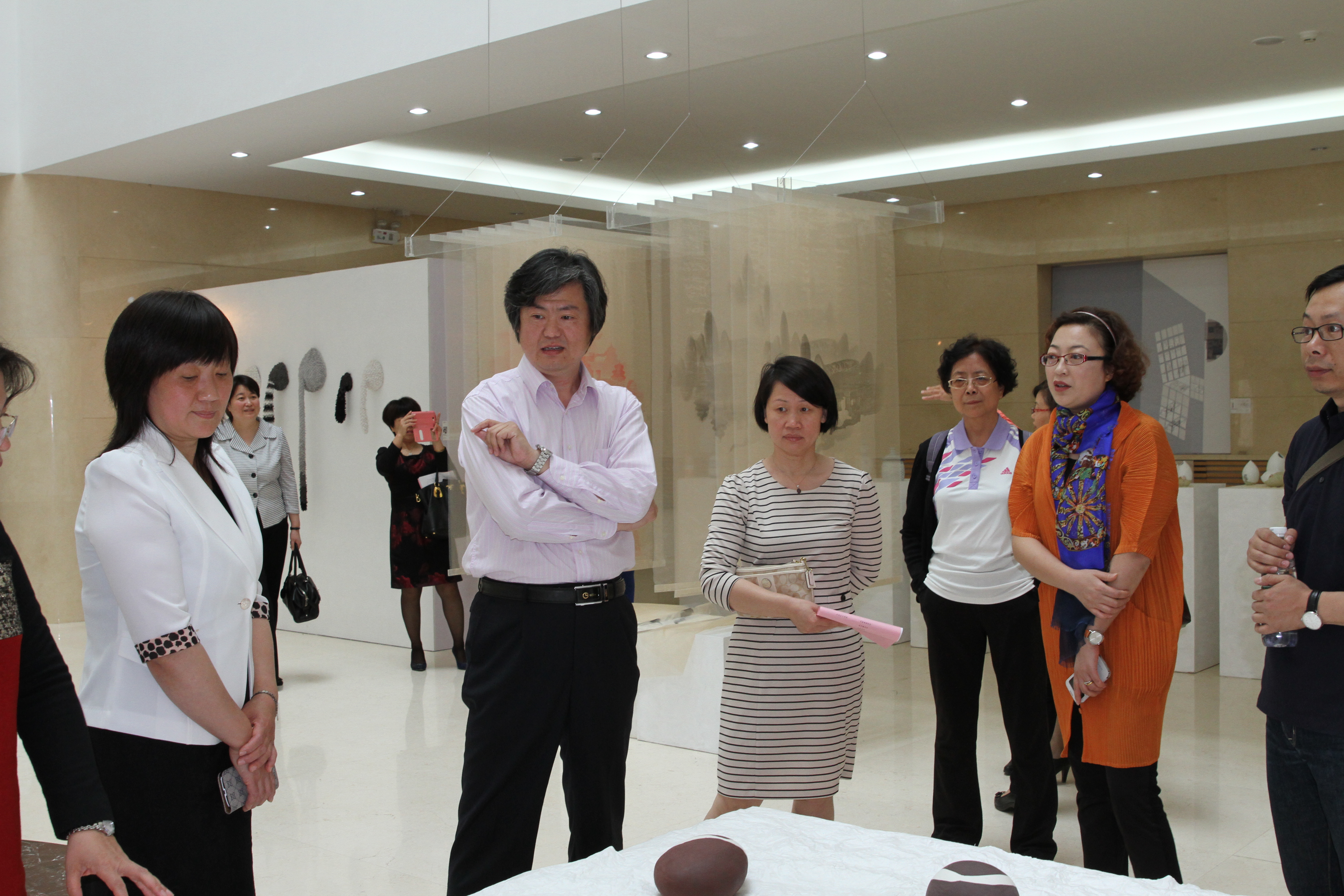 签约仪式结束后,六所小学校长和老师到中华女子学院参观了2014届艺术学院毕业设计优秀作品展,并针对作品进行了充分的探讨和了解,进一步对我校的艺术专业有了具体的认识。最后在中华女子学院学生创业基地水语咖啡对合作事宜进行了再次深入的探讨和交流。