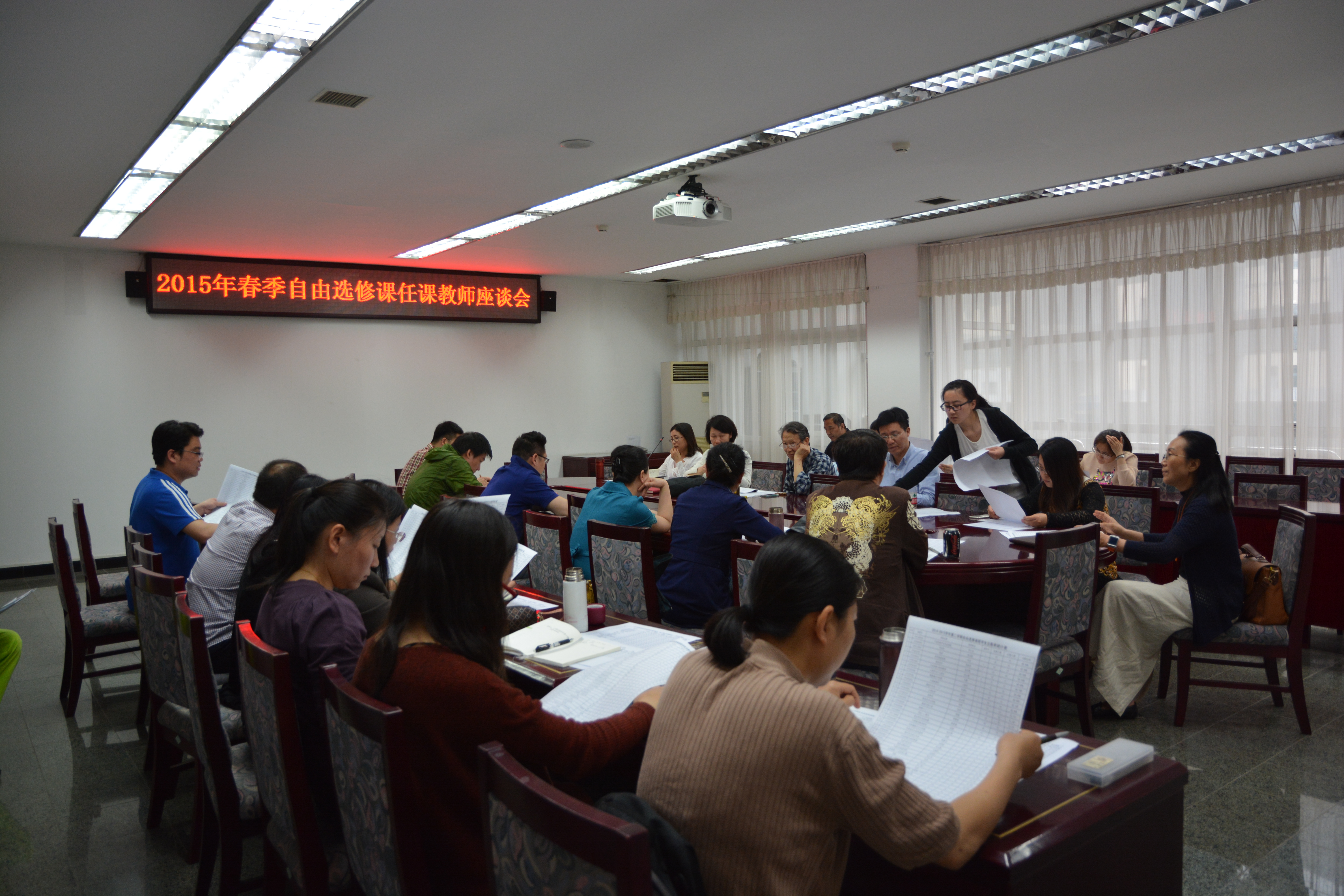 2015年4月28日上午,教务处组织召开了2014-2015年学年第二学期自由选修课第一次教学工作研讨会。会议由教务处洪艺敏处长主持,本学期开设自由选修课的任课教师参加了此次会议。 首先,洪处长介绍了我校自由选修课程的...