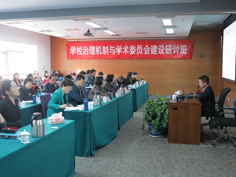 为贯彻落实《高等学校学术委员会规程》(教育部第31号令),研讨如何修订我校《学术委员会章程》,学校科研处、工会、教授协会于11月21-22在密云共同举办“学校治理机制与学术委员会建设”研讨班。党委书记李明舜、院长刘利群、副院长宋胜菊、刘梦、王京霞出席会议。会议由刘梦副院长主持,各院(系、部)主要负责人、校学术委员会委员、各院(系、部)分学术委员会委员、教授、学科带头人、学术骨干等60余人参加了研讨。