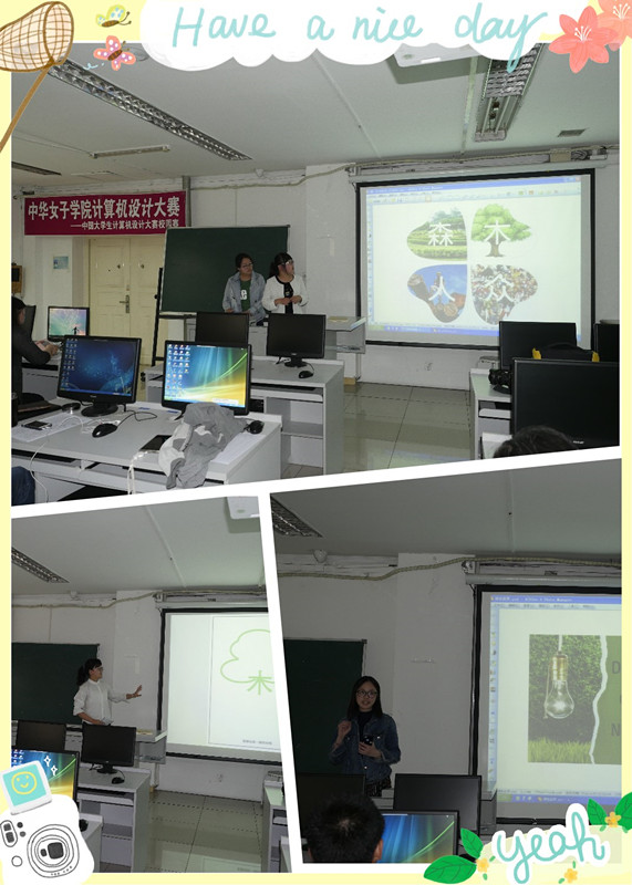 2016年4月26日在中华女子学院举行了中国大学生计算机设计大赛校园选拔赛。比赛的评委由计算机系专业教师组成。在初评筛选的基础上,来自全校各院系的33个作品进入了校园选拔赛,根据今年全国大赛的竞赛要求,我们将作品分成平面类和动画类两个组进行比赛。整个比赛紧张激烈,参赛的同学们依次上台阐述其设计作品的创意、设计理念、所使用的各种技术以及作品特点等。经过评委的严格评判,最终评选出一等奖4个、二等奖8个、三等奖 13个、优秀奖8个。至此“中国大学生计算机设计大赛校园赛”圆满落下了帷幕。