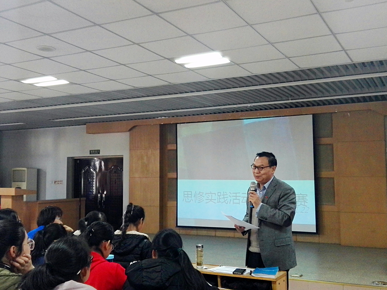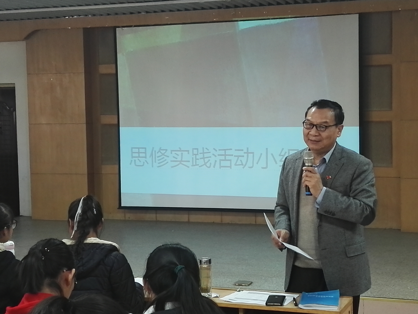 李书记指出,各个小组的活动着眼点不尽相同,但都是在细微处践行社会主义核心价值观和新发展理念,比如“爱惜校园齐行动,保护环境我先行”活动实践了我国“绿色”发展理念,“声如夏花,爱如芳草”小组关注的老年人问题则是即将迈入老龄化社会的我国必须面对的现实。对于“作名光荣的光盘侠”活动,李书记则以“贪”与“贫”、“婪”与“焚”、奢与俭的关系,借助我国传统勤俭名言,进行了逻辑性剖析。
