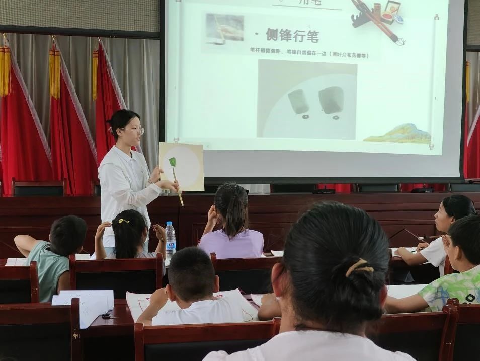 趣味实验课和国画课等课程如火如荼地进行。实践团同学们精心策划,根据研学营孩子们年龄特点和兴趣所在,采取分组教学和互动教学形式。