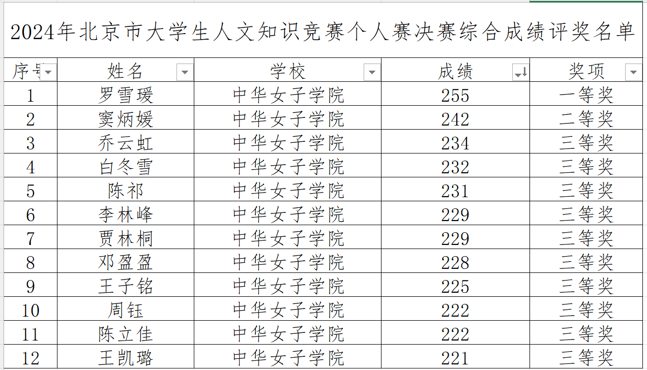 2024年中华女子学院第十四届人文知识竞赛获奖名单: