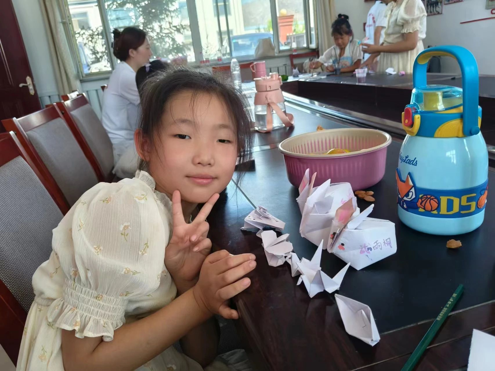 折纸课上,孩子们跟着老师的节奏,在纸张的翻转中一个个形态各异、活泼可爱的小兔子在手中诞生,让孩子们感受到了折纸艺术的独特魅力。