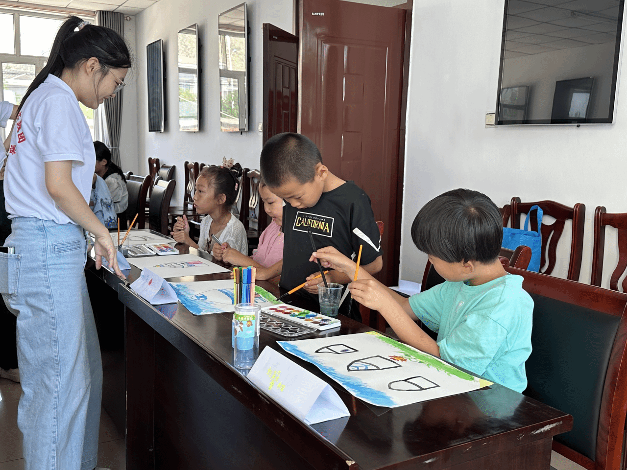 水彩课上,孩子们详细了解了蒙古包的设计与图案意义,在绘制创意蒙古包的过程中,体会绘画艺术,宣传土右文化。