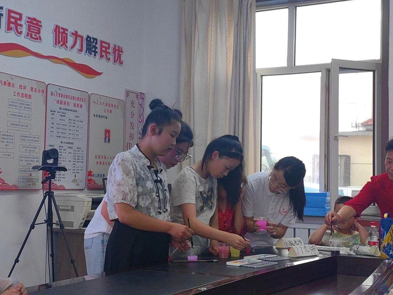 趣味实验课和国画课等课程如火如荼地进行。实践团同学们精心策划,根据研学营孩子们年龄特点和兴趣所在,采取分组教学和互动教学形式。