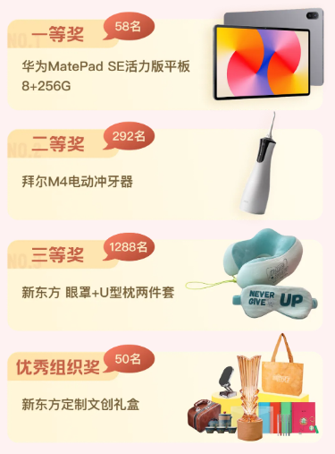 2.为方便获奖者及时接收获奖信息、顺利领取奖品,请参与者在活动页面提交准确、真实的信息,已提交信息不支持修改,请谨慎填写,未按提示提交信息者无获奖资格;活动中提交的信息,新东方智慧教育将予以保护;