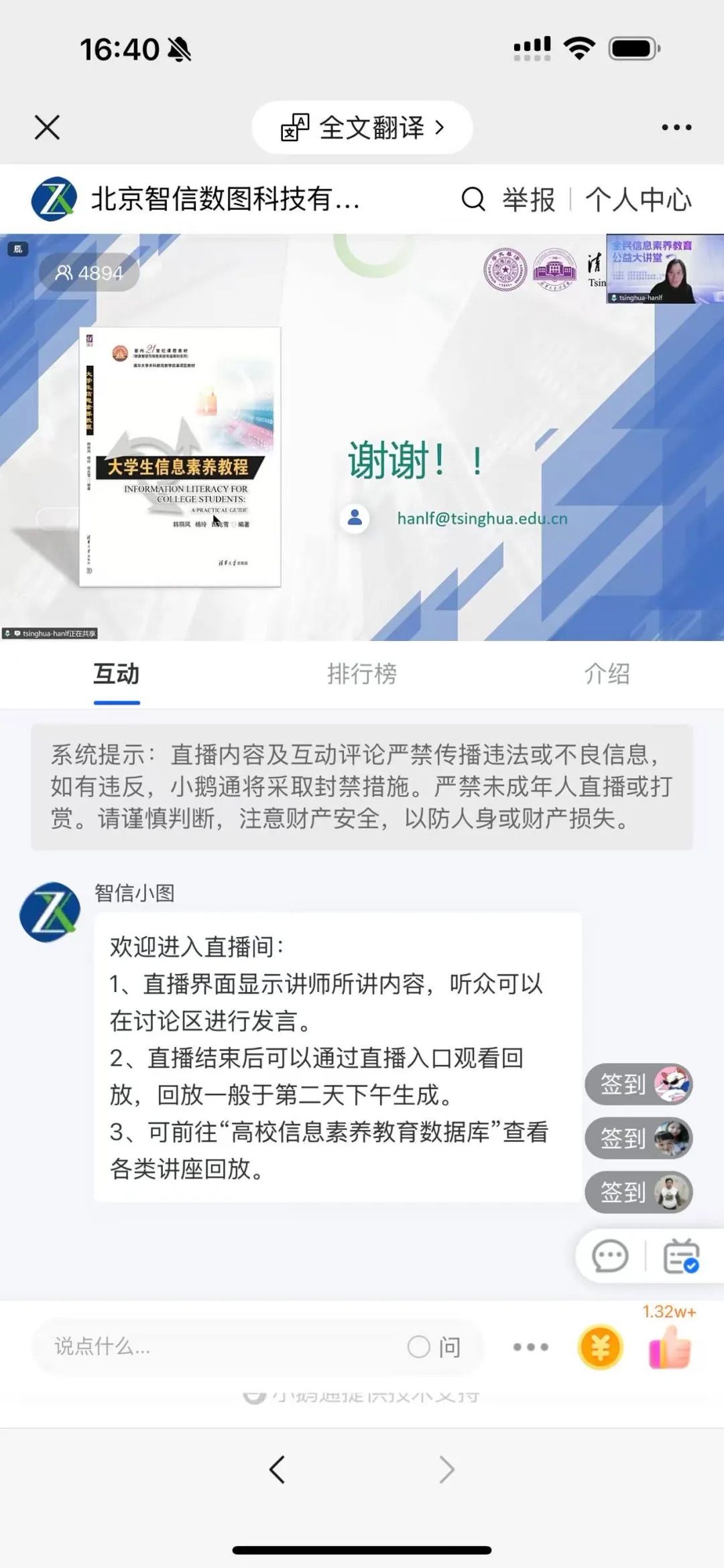 (讲座结束截图)