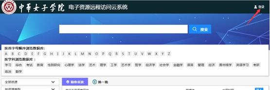 1、登录图书馆云访问平台:https://libvpn.cwu.edu.cn,点击右上角登录,输入学工号和密码(密码同门户网站密码)