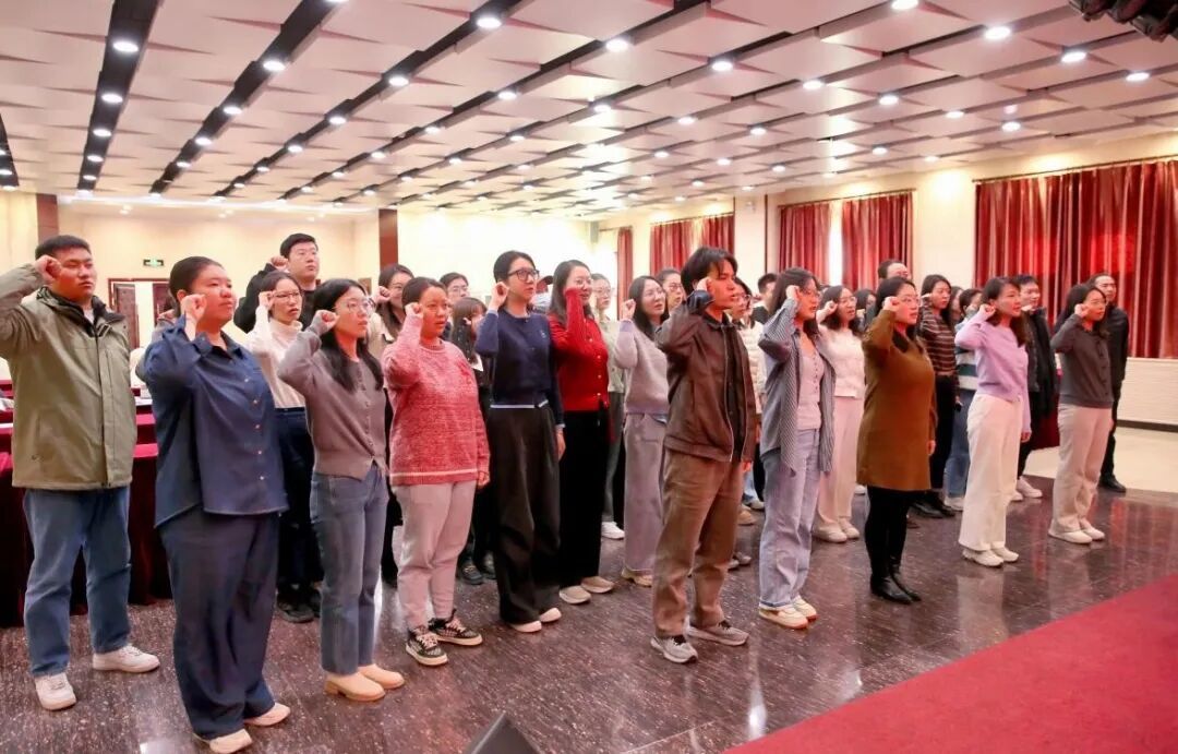 入职宣誓环节,全体新进教职工誓言铿锵、掷地有声,展现了新进老师们投身教育事业、坚守育人初心的坚定信念与崇高追求。