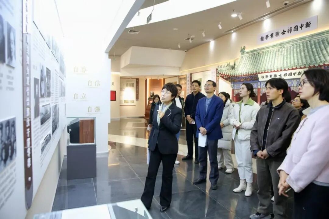 刘亚玫书记带领新进教职工走进校史馆,讲授了一场生动的现场教学思政大课。她从建校背景、办学初心、学校特色、女院精神和时代使命等五个维度系统回顾了学校76年奋进历程。她动情地告诉老师们,女院因党而建、为国而生,六次更名背后,是一代代女院人对为党育人为国育才使命的坚守,是全体师生迎难而上、攻坚克难、不断创新的奋斗。她强调女院教师要牢记习近平总书记嘱托,传承红色基因,发扬“爬坡精神”,做有信仰、有情怀、有担当、有格局的教育工作者。