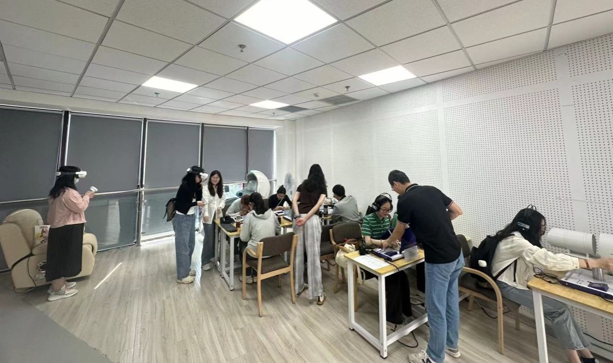 随后,同学们体验了多种与心理测试、心理健康干预相关的仪器。动作稳定仪、双手协调仪、逻辑思维仪、镜画仪、压力舒缓仓、VR眼镜等高科技仪器,展现了现代科技对现代心理学发展的重要意义。在体验的过程,同学们不仅学会了如何使用这些工具,还通过不同的模型和卡片体验到不同视角带来的差异化感受。
