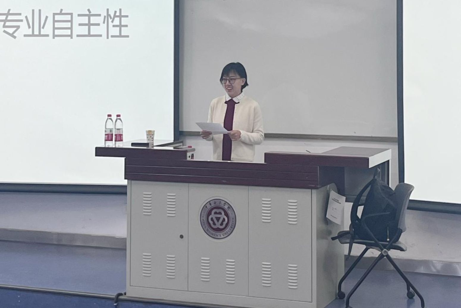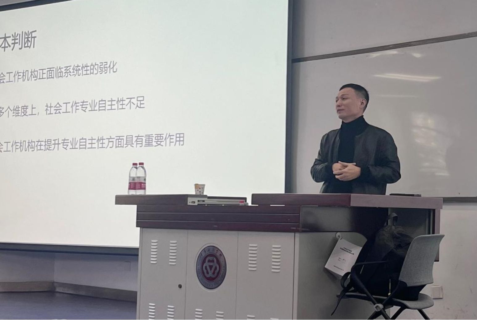 2024年10月22日下午,由社会工作学院与学校科研处联合主办的“中华女子学院名师名家讲座暨社会工作学院智行讲堂(第十八讲)”在教图楼213阶梯教室举办。本期讲堂嘉宾为南开大学郑广怀教授,讲座题目为《社会工作机构与专业自主性》。讲座由社会工作学院副院长郝彩虹副教授主持。郝彩虹对郑广怀教授的到来表示了诚挚欢迎,指出此次讲座是同学们深入了解社会工作专业和社会工作机构发展的结构条件、认识我国社会工作专业发展特色的宝贵学习机会,希望大家认真聆听学习。
