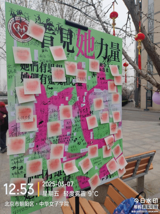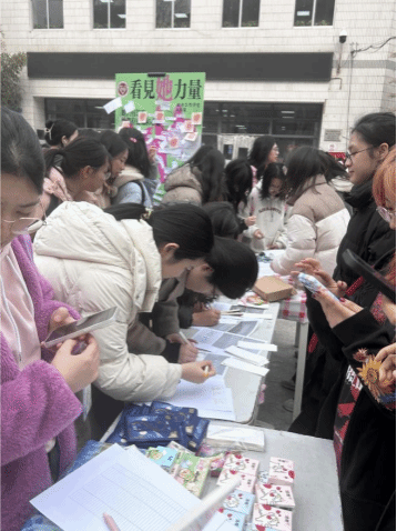 3月7日中午,食堂小广场化身“她力量能量站”。刻板印象KT板“成为焦点”“女性要柔弱一点”“女生多的地方是非多”“文科优势”等标签被参与者逐一撕下,替换为“独一无二”“自信”“做自己”等铿锵宣言。活动现场,社会工作学院特别定制的"女性力量钥匙扣"作为勇气见证,被赠予每位参与活动的学子。