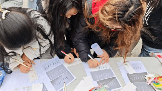 参与者执笔临摹女书“我不是鸟,我是风本身”“你我皆自由”等字符,在素雅书签上勾勒千年女性智慧。临摹女书的同时,女院学子也从中获得了强大的女性力量,激发了自信心。