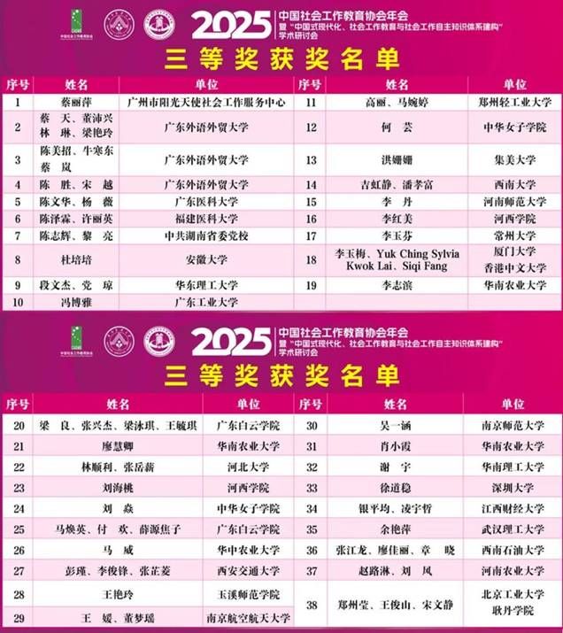 2025年8月23-24日,由中国社会工作教育协会主办、华南农业大学公共管理学院承办的中国社会工作教育协会2025年会暨“中国式现代化、社会工作教育与社会工作自主知识体系建构”学术研讨会在广州举行。来自全国230余所高校、专业机构的800余名专家学者、实务工作者齐聚一堂,围绕社会工作领域前沿议题展开深度研讨,是我国社会工作领域极具影响力的年度学术盛会。社会工作学院李敏教授、李芳英副教授、苗艳梅副教授、何芸副教授、刘焱博士受邀出席,在多个分论坛上围绕最新研究成果做出主题发言。