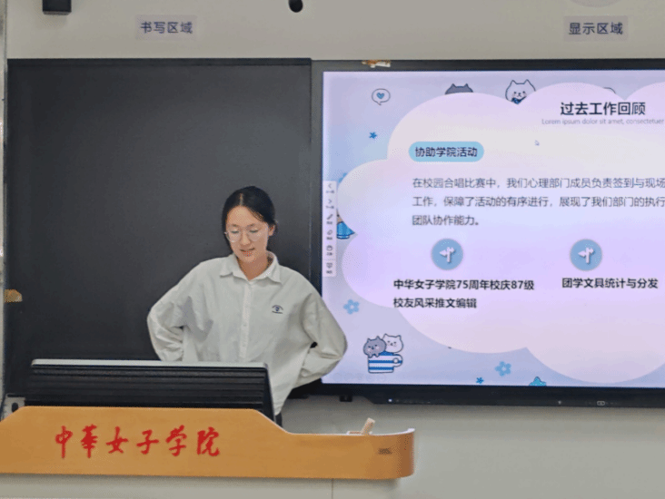 随后,第十届主席团和团总支副书记分别就各自组织的日常工作流程及相关注意事项进行了详细讲解。她们分别在会议上强调了学生会与团总支日常工作的流程及相关事宜,包括如何撰写推文审批表、活动策划案及活动报销流程等。具体包括活动规划必须周全细致,涵盖活动流程、时间安排、人员分工和物资准备等各个环节,以确保活动的顺利进行,还强调了活动推文撰写的规范性,要求各部门部长严格把关,提高整体工作效率。团总支副书记鼓励每位成员在活动执行过程中积极发挥个人能动性,相互协作,共同在团总支这个大舞台上展现自己的才华与魅力。
