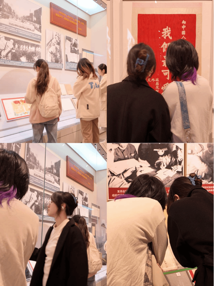同学们踏入中国人民革命军事博物馆,抗美援朝战争馆的展陈瞬间将大家带回75年前的烽火岁月。大家依照 “红色打卡” 任务指引,在各个展柜间参观各类承载着“保家卫国、视死如归”英雄气概的历史文物,深刻体会到抗美援朝精神的厚重与震撼,更加明白如今和平生活的来之不易。