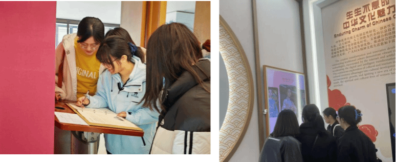 该展览以“数智赋能:平等、创新、共享、发展”为主题,全面呈现了中国在制度保障、科技创新、文化传承、公益参与及全球行动等多个领域,通过数智技术赋能妇女和女童发展的丰硕实践成果。通过一幅幅生动的图景、一组组详实的数据、一个个创新的案例,展馆呈现了中国式现代化进程中男女平等与妇女全面发展的生动实践,在场学生党员深切感受到中国方案为妇女和女童事业带来的温暖与效能。