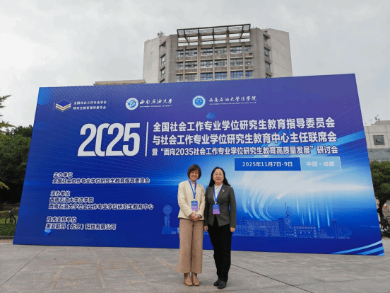 2025年11月7-9日,全国社会工作专业学位研究生教育指导委员会与社会工作专业学位研究生教育中心主任联席会暨“面向2035社会工作专业学位研究生教育高质量发展”研讨会在西南石油大学隆重召开。来自全国百余所高校和科研机构的专家学者齐聚一堂,共同探讨面向2035年的社会工作专业学位研究生教育创新与高质量发展路径。我院李敏院长与郝彩虹副院长参加会议,并在分论坛中作主题发言。