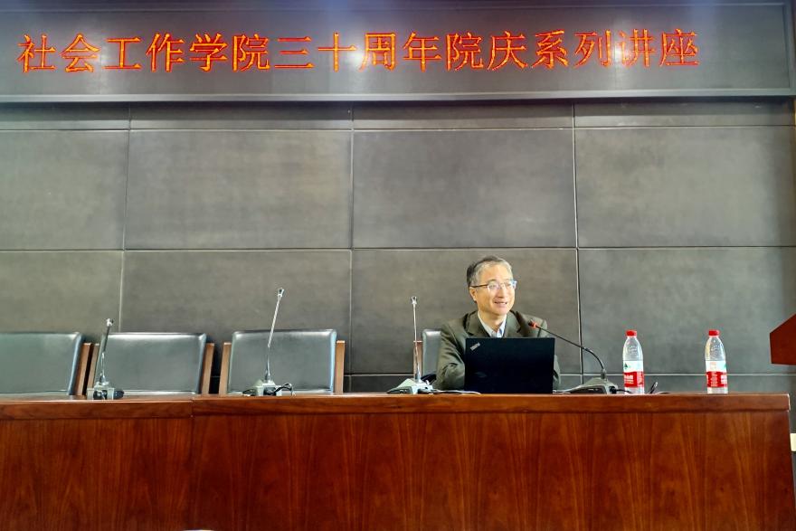 刘能教授首先系统地梳理了基层地区与社会治理含义的历史变迁:通过对古代封建时期、封建帝制时期、近代化和当代时期,中国在社会治理方面的探索和实践的梳理,力图在中国传统社会的政治、经济、土地、人口等制度中寻求社会治理经验,以进行本土化的社会治理研究与实践。刘能教授特别强调了历史传统对社会研究的借鉴意义。随后,刘能教授通过对社会治理与社会管理这两个概念的比较分析,阐明了社会治理的概念,并着重解析了现代性和社会问题、风险社会和福利生产、三大部门的合作这三大社会治理的理论语境。基于此,刘能教授依据自己的实践调查向大家分享了社会治理经验场域的强、中、低三类控制型案例。最后,刘能教授指出基层社会建设的两个方向为信息化建设和社会组织的培育,并鼓励有志从事社会工作实务和研究的同学,对此进行科研和实践的探索。
