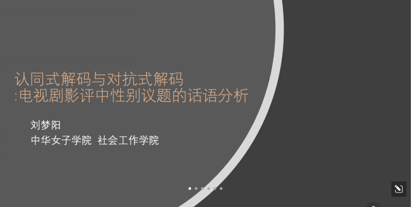 本次讲座的主题为《认同式解码与对抗式解码:电视剧影评中性别议题的话语分析》。刘梦阳博士对三部剧集影评语料库进行分析,发现电视剧影评引起性别话题的讨论中引起认同式解码的是女性的情感、职场困境,此类解码拓展女性发声的空间,进行了话语赋权。还发现性别议题的激烈的争论并非发生于文化距离最远的传统性别观念这一端,而是聚集在尚未在社会层面形成清晰划分和界定的模糊性、标签化、浅层化的性别讨论,刘梦阳博士进一步指出构建和谐性别话语讨论氛围的关键在于消除模糊地带,通过各种渠道澄清性别议题中关键概念的真正含义,消除误解与话语代沟。