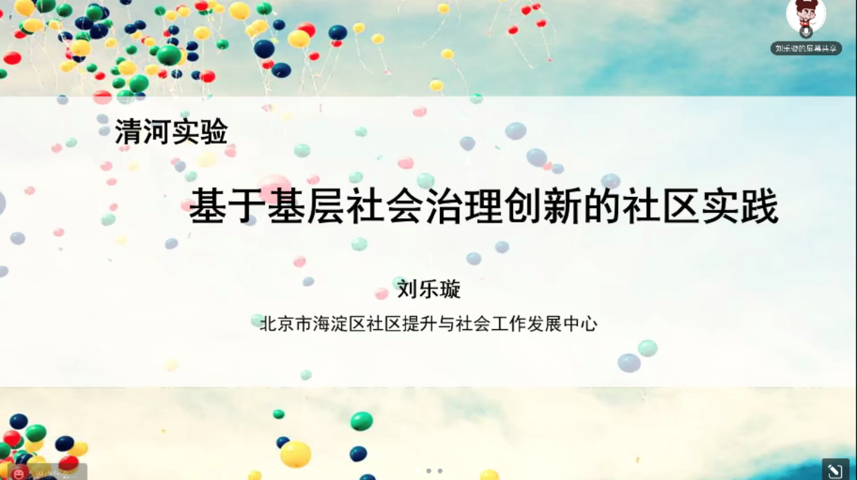 2022年12月5日上午,《社会工作概论》课程主讲教师社会工作学院李敏教授邀请海淀区社区提升与社会工作发展中心社会工作者刘乐璇线上为2022级的社会工作专业硕士研究生做了《基于基层社会治理创新的社区实践》的实务分享。