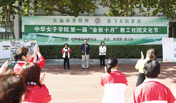 10月14日中午,中华女子学院第一届“金秋十月”教工社团文化节在学校操场举行。学校党委书记、副院长兼工会主席李明舜,院长、党委副书记刘利群出席文化节活动。校工会委员、各社团负责人及部分教工参加。此次文化节系列活动由校工会主办、各教工社团承办,工会常务副主席主持。