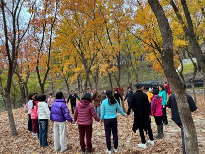 为进一步促进教职工身心健康发展,更好的帮助教职工舒缓心理压力及自我成长,在工作中寻找乐趣,在生活中发现美好,10月27日校工会(妇委会)在北宫国家森林公园举办“快乐解压激活力 趣味赋能添动力”教职工心理减压拓展活动。 学校党委副书记、工会主席赵浩参加活动并和大家一起体验艺术疗愈的魅力。