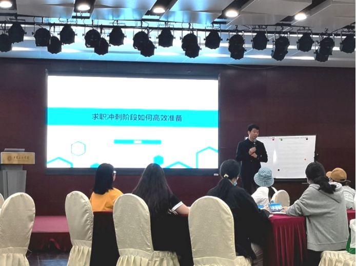 CMC(CGL管理咨询)创始合伙人、德尔塔工作室创始人安吉老师为同学们带来《如何从大学生转变为职场人》主题课程,课程从“校园到职场”、“大学生到职场人”两个方面进行讲授,为同学们生动讲述了融入职场要找到的五种“成长伙伴”、让职场女性绽放的三把“美好花钥匙”。随后的求职研讨会环节,安吉老师、兰京老师和光辉国际领导力发展方向专家顾问李梦抒老师与同学们共同探索在求职中遇到的问题。
