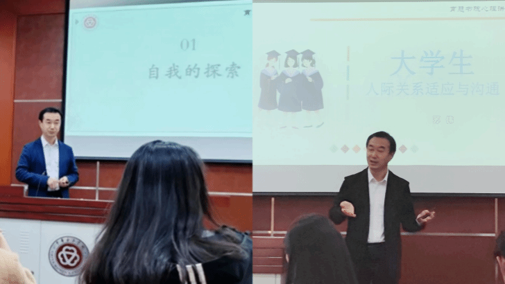 苏老师借用《西游记》里的台词 “你是谁?你从哪里来?要到哪里去?我们究竟在追求什么?”引发同学们的思考,并结合时下的热点小游戏“羊了个羊”打开了互动的突破口,同学们踊跃发言,顺利破冰,苏老师又以“分享”为切入口,通过自己的亲身体验以及发人深省的真实案例帮助同学们从心理学角度剖析了他们的内心世界,发掘了更多的缓压方式,并提出:新世纪新时期衡量“幸福”的又一标准就是良好的人际关系。